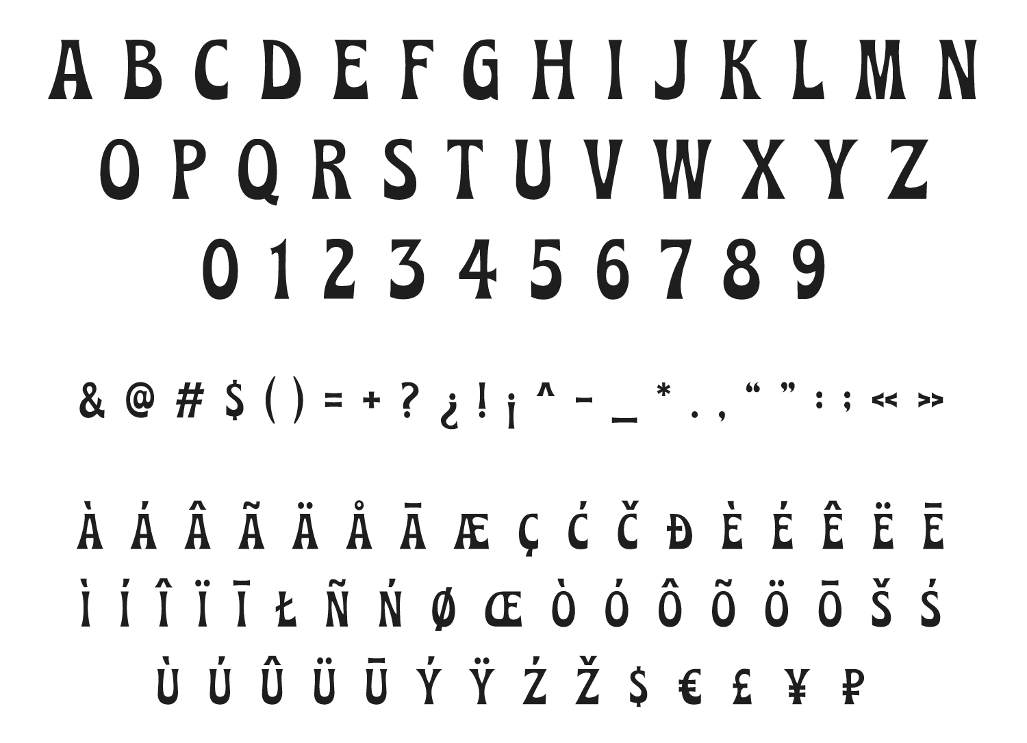 Latin alphabet with extended European language support.